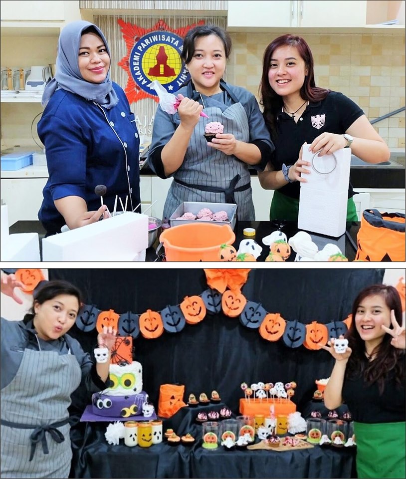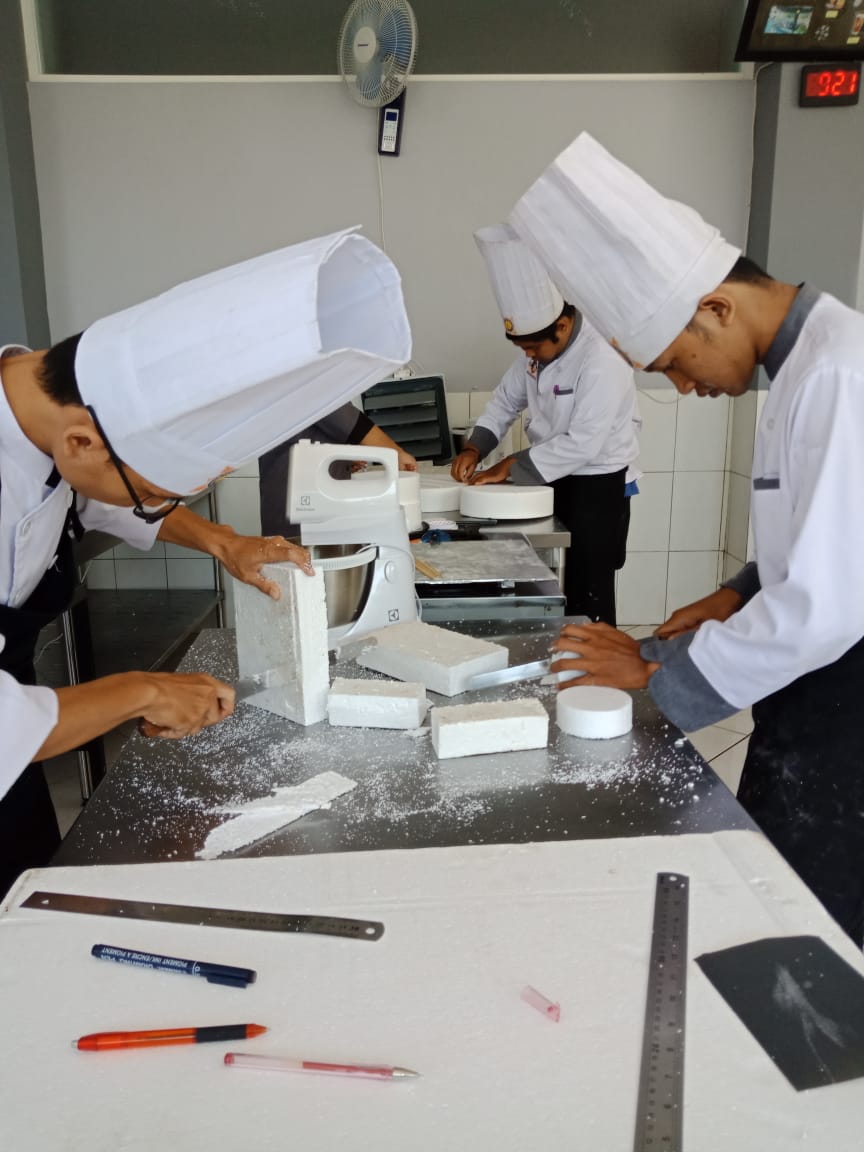 Challenge was given by the Baking and Pastry lecturer, Chef Lily Andayani ST. M.Mpar, to seventeen Baking and Pastry Art students to create two showpiece cakes. The students’ abilities to create ornaments and a dynamic blend of colors had succeeded in beautifying their Showpiece Cakes. Read more to see the result.