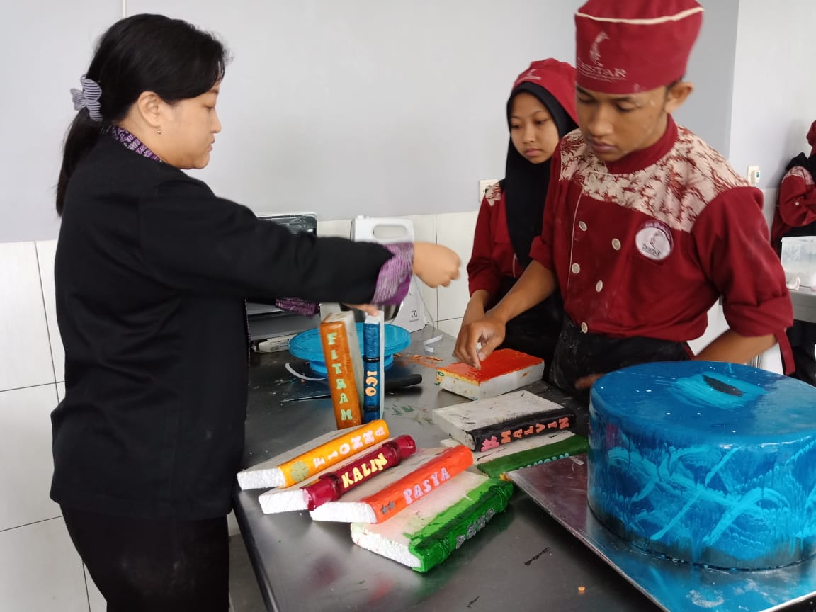 Students of Baking and Pastry Art in Tristar Institute Batu were challenged to decorate Showpiece Cakes. They were free to choose the themes and decide the decorations.