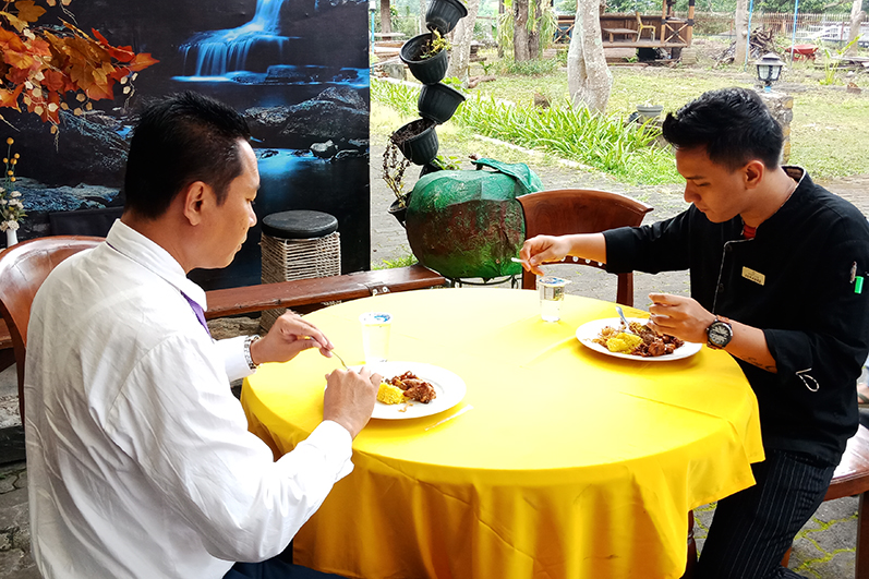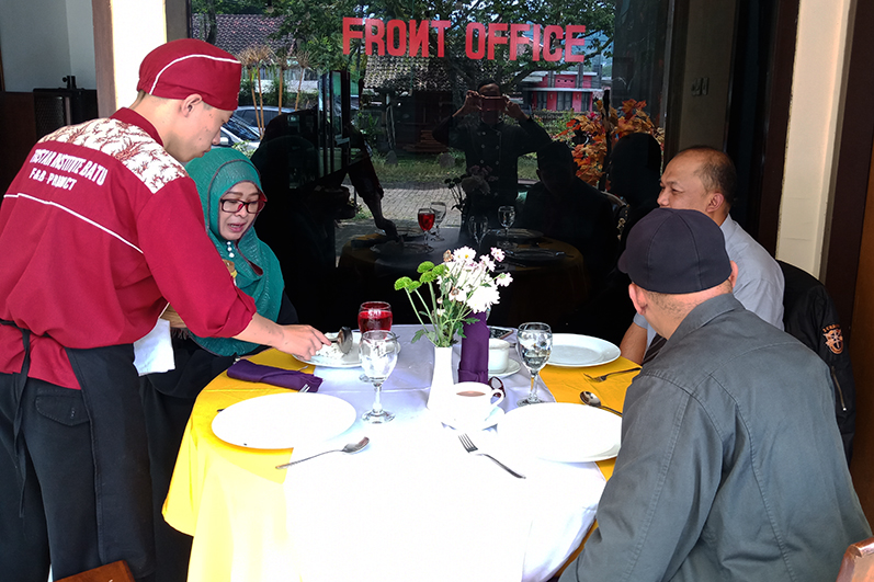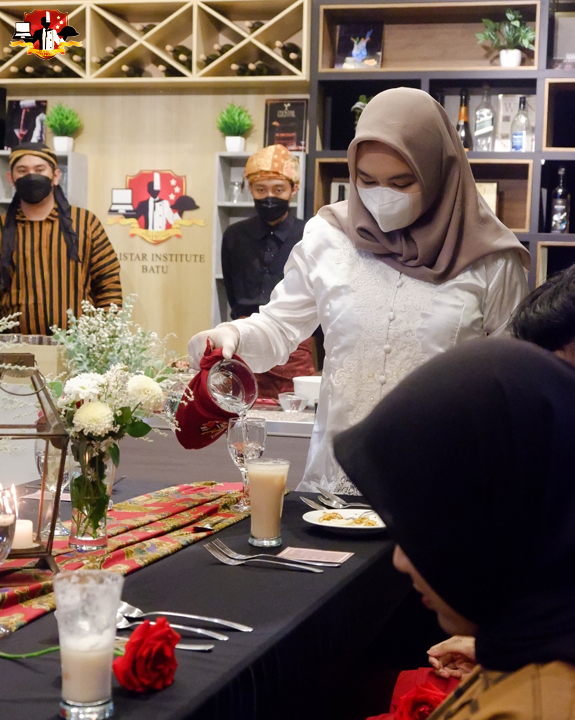 There was a strain of Javanese instrumental music in Tristar Institute Batu’s lobby. A big Calonarang mask and Poleng, Balinese fabric, were displayed at the entrance. The tables were decorated with Batik and candles. That day, on July 2nd, a Fine Dining from Cruise B was held in Tristar Institute Batu. The theme was "Wonderful Indonesia". They gave Nusantara ambiance and served foods from Islands all around Indonesia.